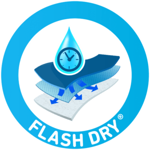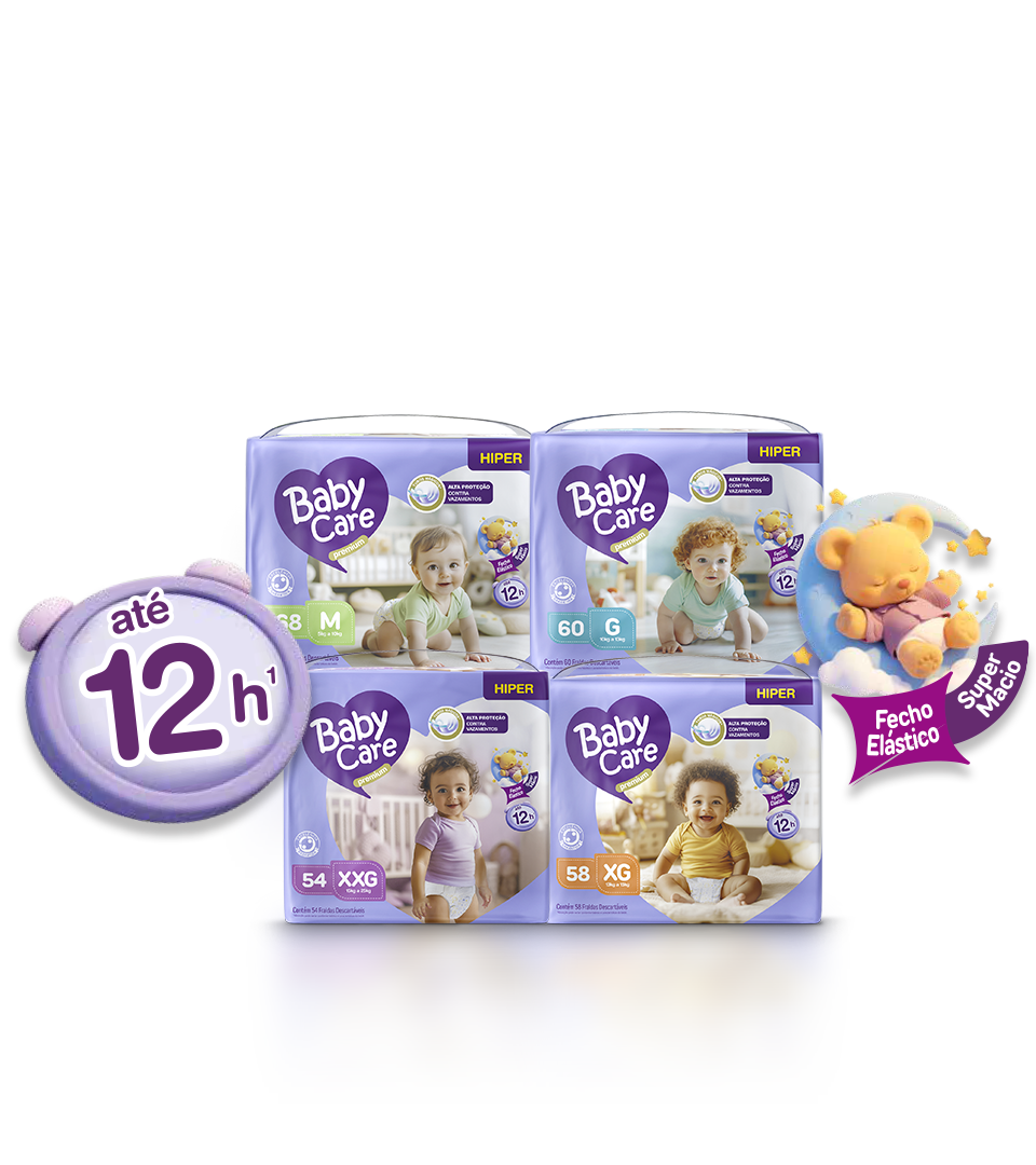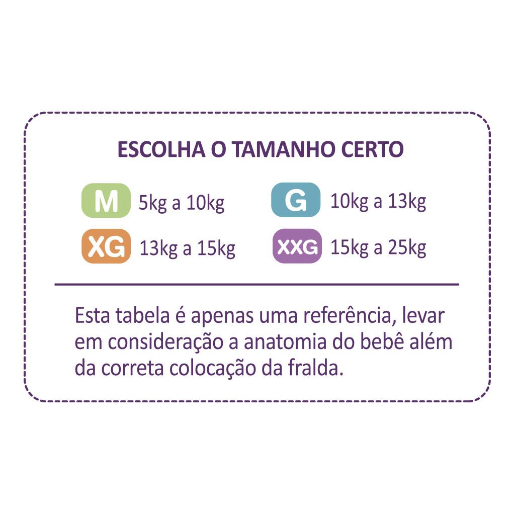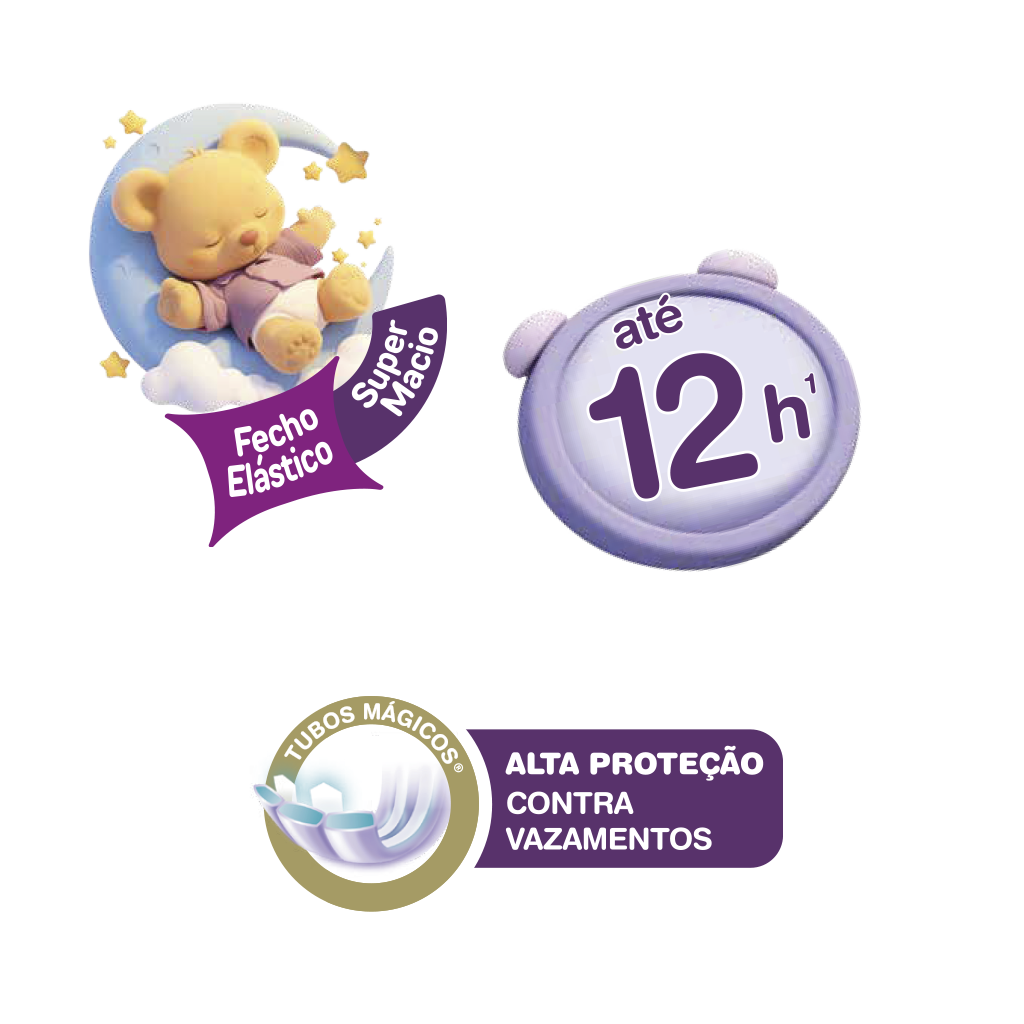Camada que absorve e bloqueia instantaneamente a umidade, mantendo o bumbum do bebêconfortável e seco por até 12h.
